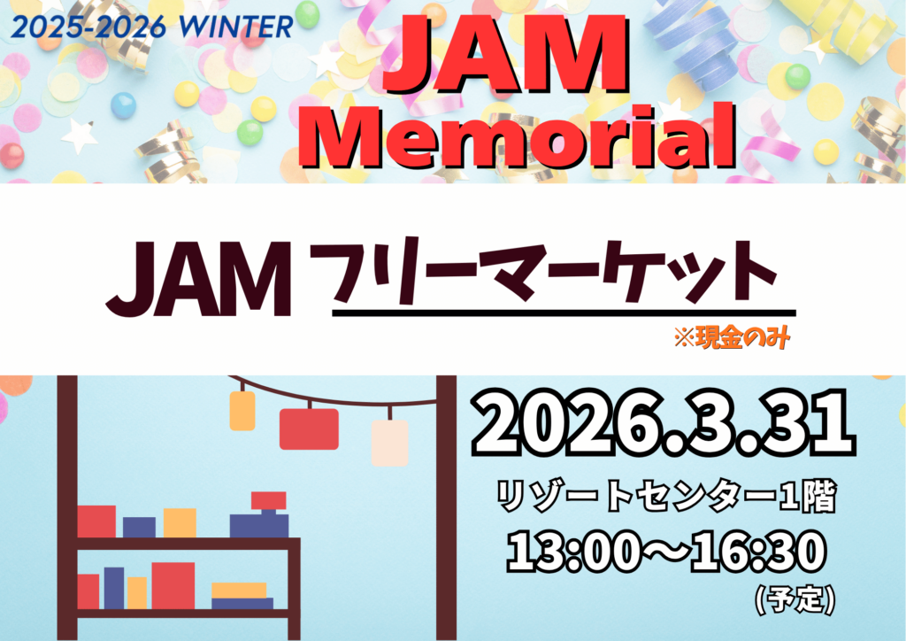 【3/31(火)】25-26 JAM Memorial フリーマーケット開催!