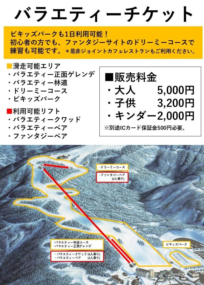 初めてのスキースノーボードの上達に最適な「バラエティーチケット」が登場。